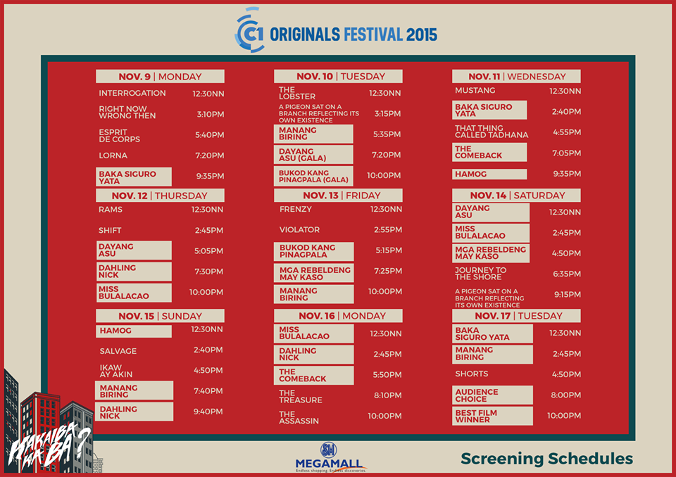 Cinema One Originals 2015 megamall schedule