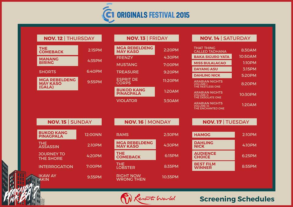 Cinema One Originals 2015 resorts world manila schedule