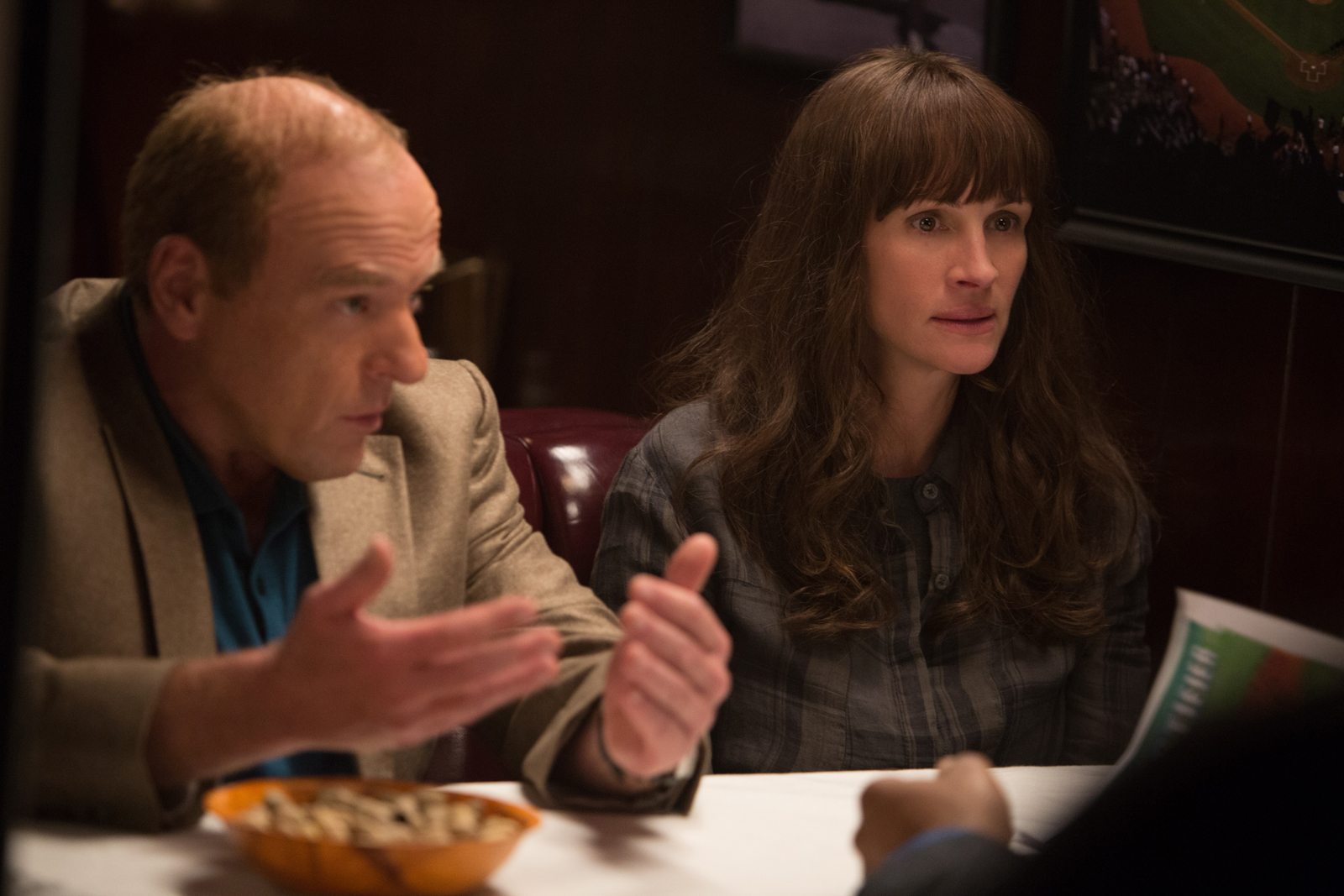 For Julia Roberts the essence of the story is about the evolution of people who were taken off track by destiny. “I was very taken with Billy’s script. I don’t read a lot of scripts that I like and I don’t work very often. But I read this and thought it was truly interesting. “Billy has been remarkable for me as an actor. He’s so available and he’s like Encyclopedia Brown. He knows everything, he’s calm and he’s super-loving. He’s always taking care of all of us in these very fragile scenarios that he’s created. I think he probably feels bad for putting us through all this,” she laughs.