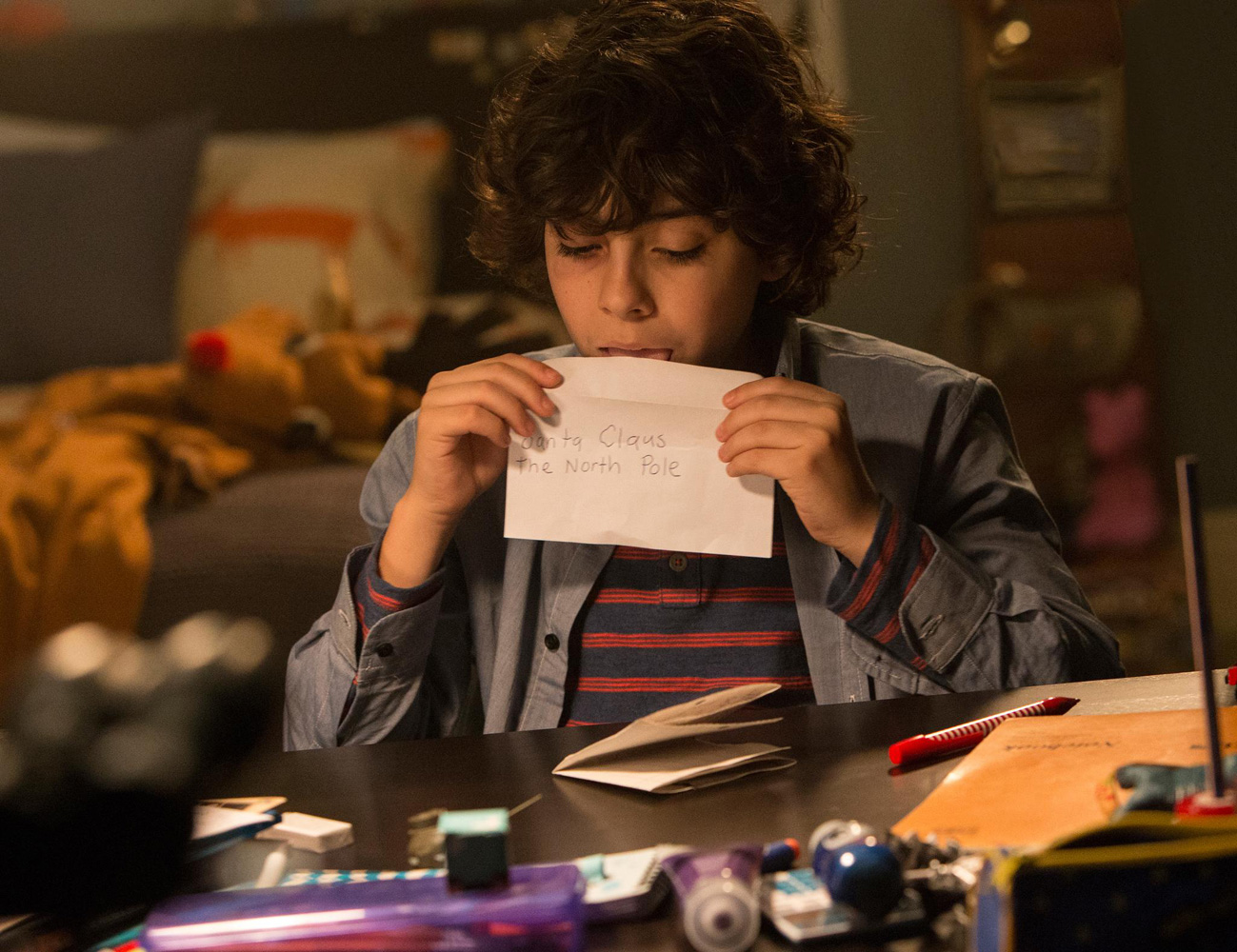 Max, the glue that holds the fraying Engel family together, is portrayed by young movie veteran Emjay Anthony, whose 12-year-old enthusiasm infused the entire period of principal photography. “It was awesome,” exclaims the co-star of “Chef” and “Insurgent” about working on “Krampus.” As he seamlessly slipped in and out of character with each take, Anthony exuded the ease of a child actor with a lot of on-set experience. At the same time, the self-professed trickster took great delight in pranking cast and crew throughout the shoot. He particularly enjoyed when Dougherty colluded with him.