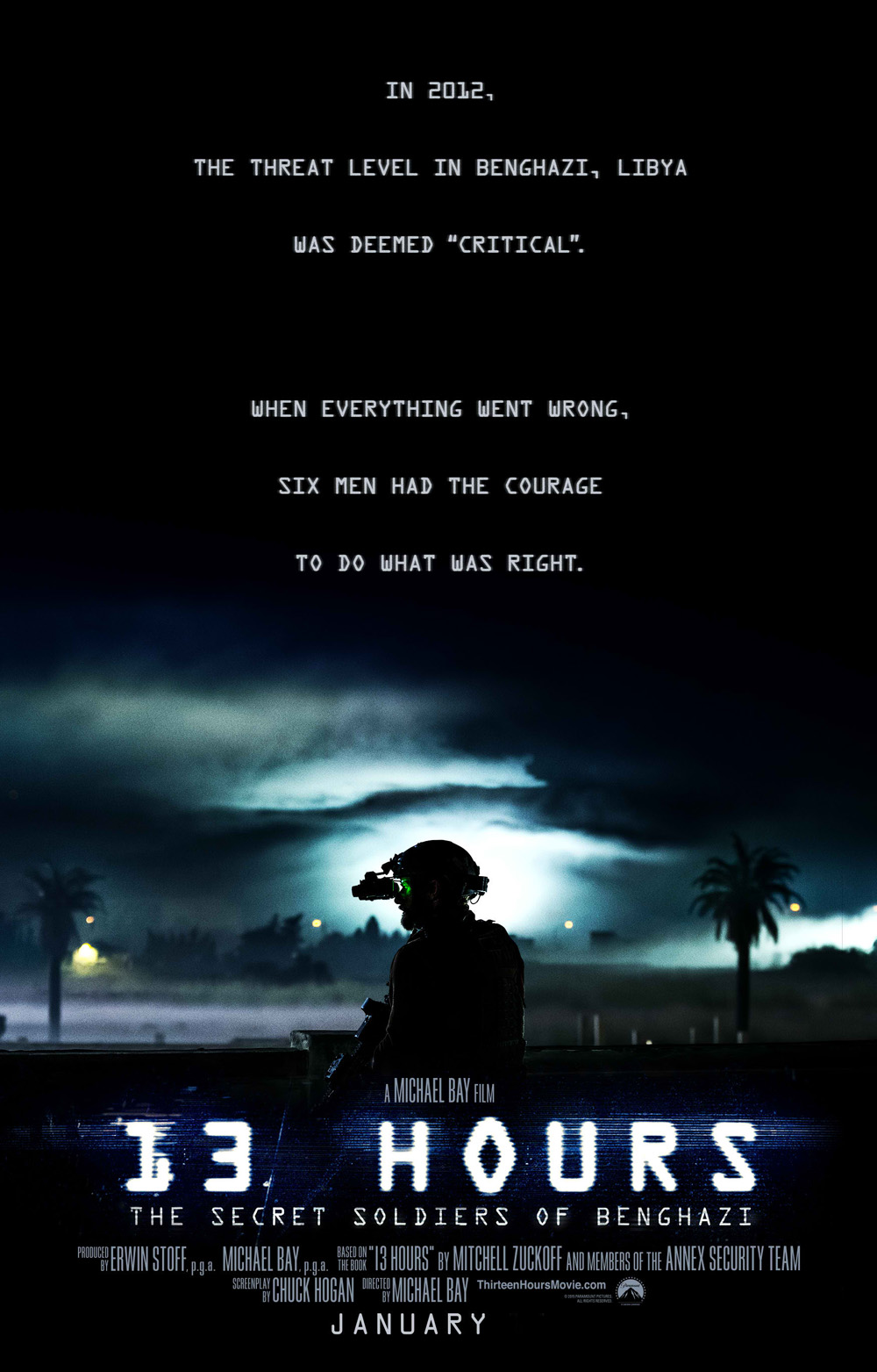 Based on the non-fiction book by Michtell Zuckoff, the film tells the story of the six members of the security team that fought to defend the Americans stationed at the embassy in Benghazi when it came under attack.