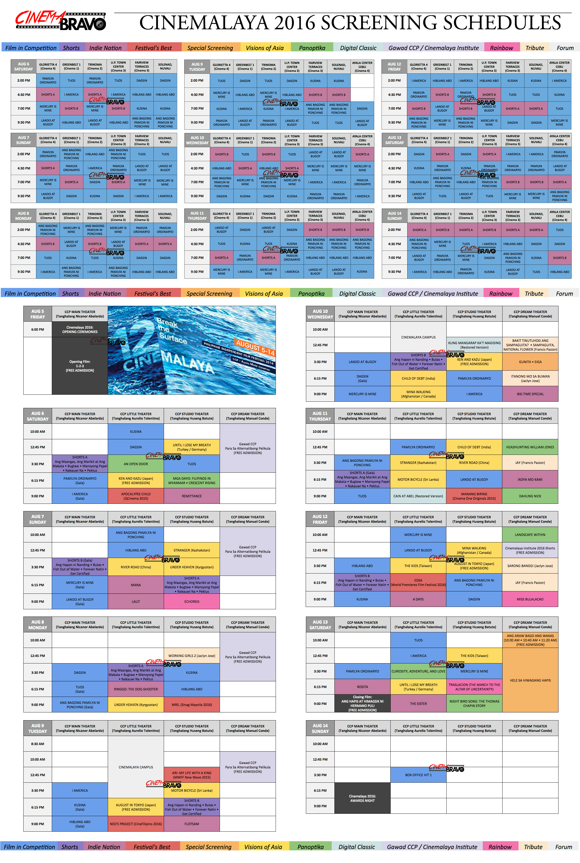 - Cinemalaya Institute Short Films (August 12, Friday, 12:45 PM, CCP Dream Theater)