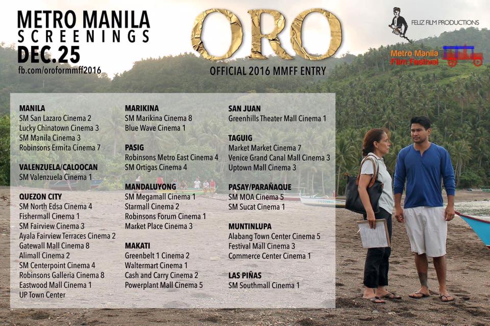 From Feliz Film Productions and as distributed by Solar Pictures, “Oro” opens December 25, 2016 in cinemas nationwide as part of the anuual Metro Manila Film Festival.