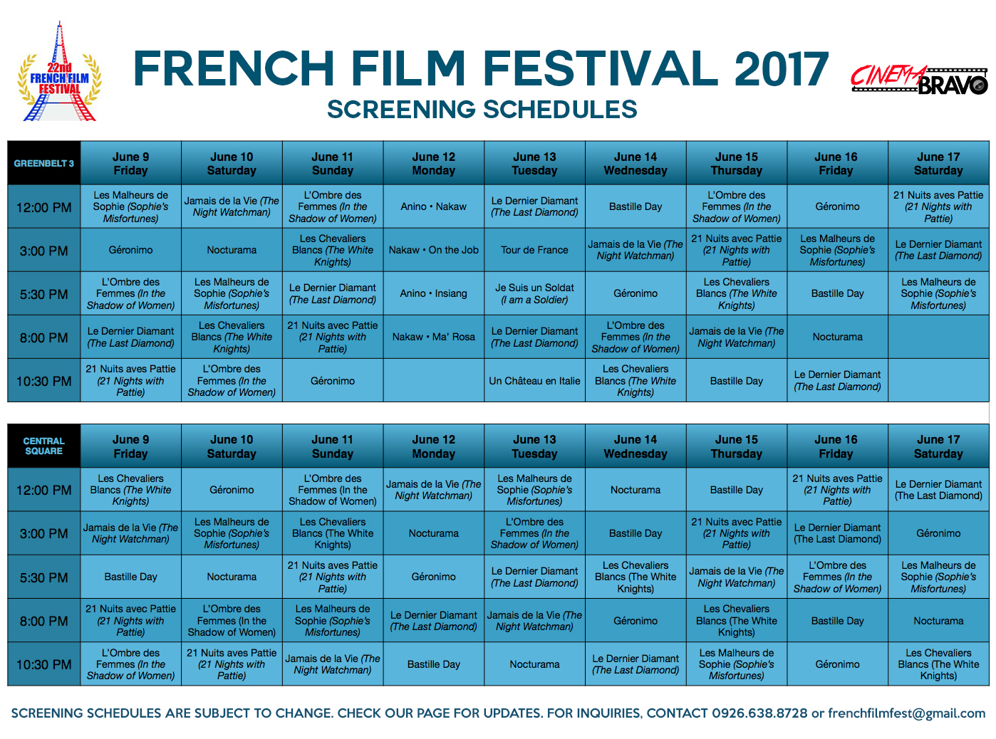 For the film line-up and screening schedule, visit http://www.facebook.com/FrenchEmbassyManila and http://www.ph.ambafrance.org. Share your French Film Festival story on social media using the hashtag #FrenchFilmFest22 and #PhilFrance70.