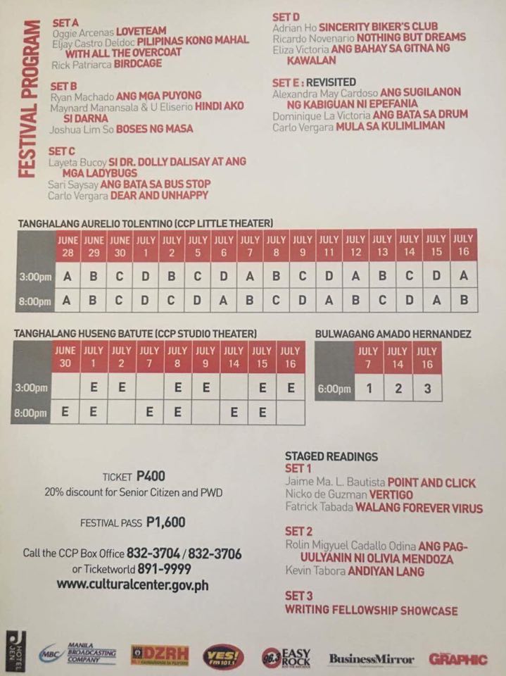 Tickets are available at the CCP box office and all TicketWorld outlets. For ticketing information, please call the CCP Marketing Department at 832-3706 or 832-3704 or email the Sales and Promotions Division at ccpsalesandpromo@gmail.com.