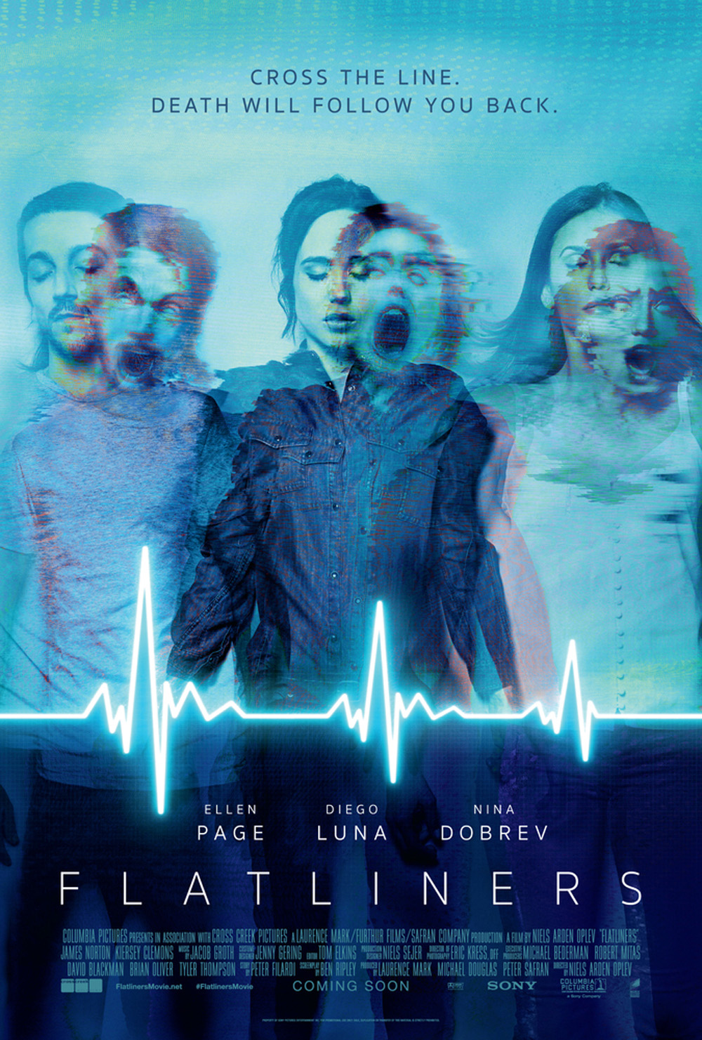 “Cross the line. Death will follow you back,” warn the two new posters for Columbia Pictures’ new suspense thriller Flatliners which have just been released by the studio.