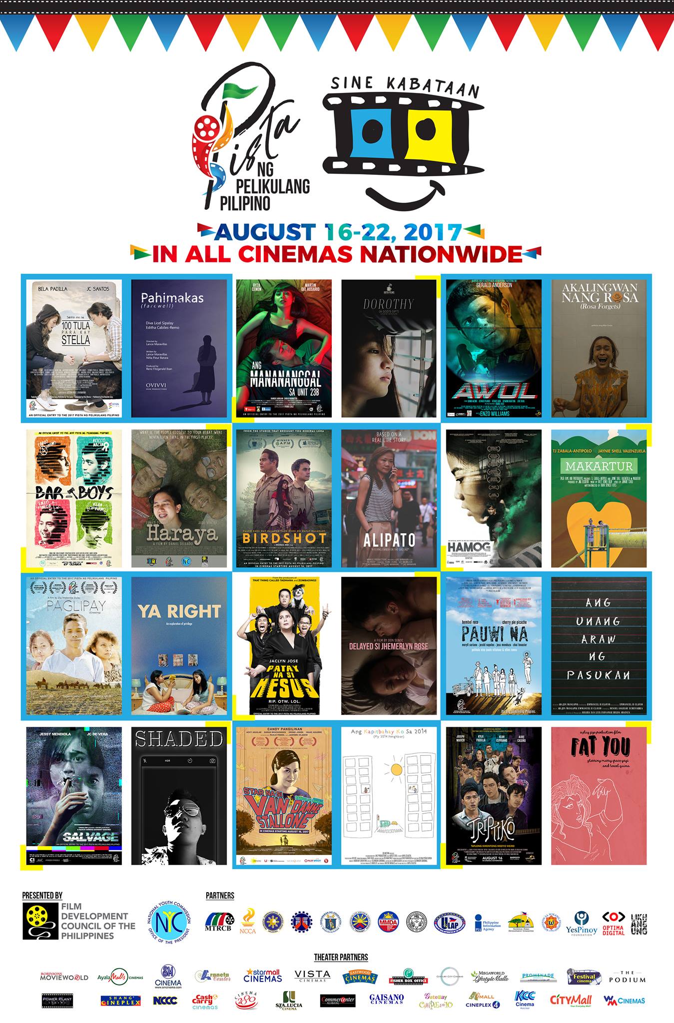 Each full-length film will be preceded by a short film entry of the National Youth Commission’s Sine Kabataan. Here is the complete list of pairings.