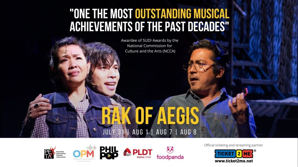 After insistent public demand, the Philippines’ longest-running original Filipino jukebox musical, Rak of Aegis, is going online! This is made possible by Philippine Educational Theater Association (PETA), together with Organisasyon ng Pilipinong Mang–Aawit (OPM), The Philpop Musicfest Foundation (Philpop), PLDT Home Fibr, and Foodpanda. Rak of Aegis will stream via www.ticket2me.net on the following playdates: July 31, August 1, August 7, August 8, 2021.