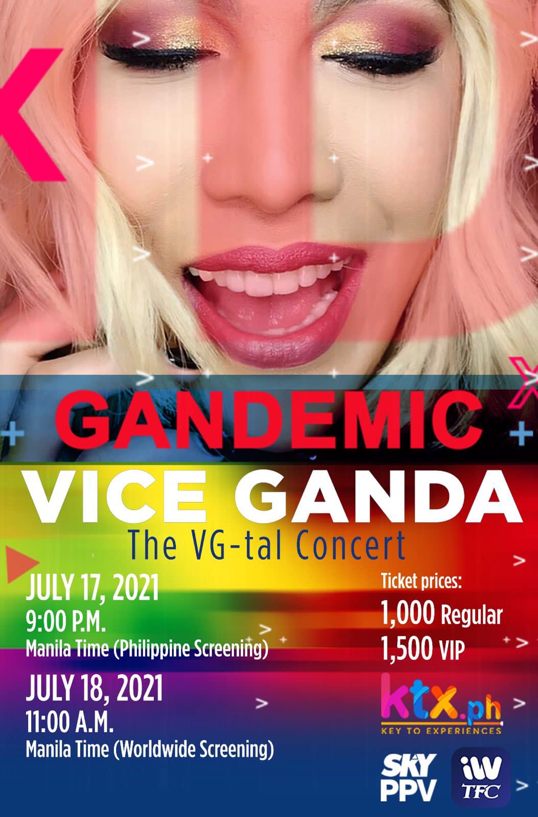 VIP e-ticket (P1,500) gives you access to “Gandemic VICE GANDA: The VG-tal Concert” and a special meet-and-greet session with Vice Ganda. A separate Zoom link will be sent to you by the producer for the meet and greet.