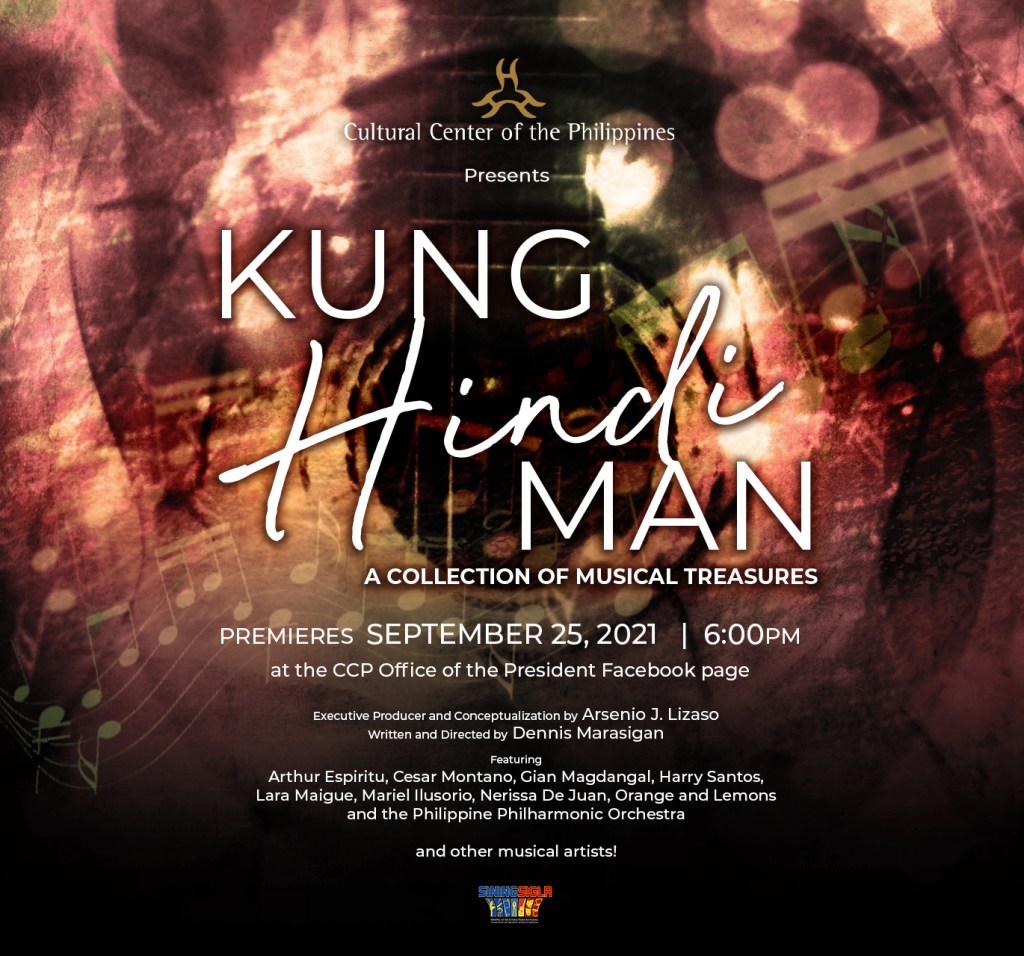 KUNG HINDI MAN, A Collection of Musical Treasures airs every Saturday, 6PM, at the CCP Office of the President Facebook. This free event will run until December.