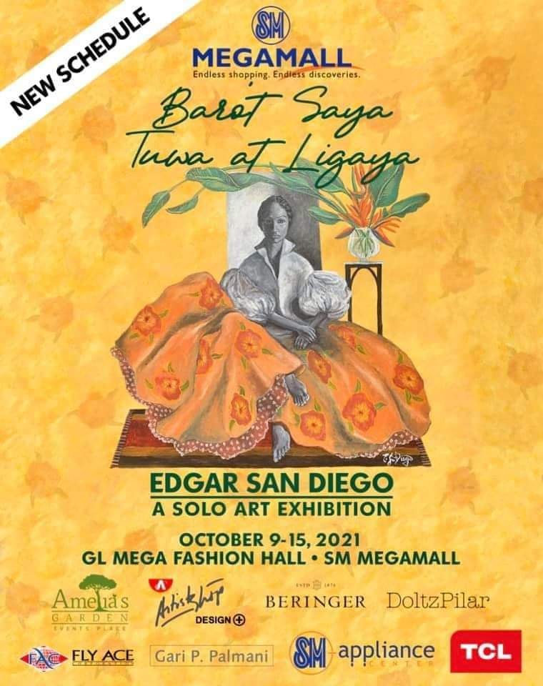 Noted fashion designer Edgar San Diego is mounting his first-ever solo exhibit entitled ‘Barot’ Saya, Tuwa at Ligaya.’ The theme of the exhibit is a ‘Tribute of Joy to the Filipina and her Traditional Dress amidst the Pandemic.’