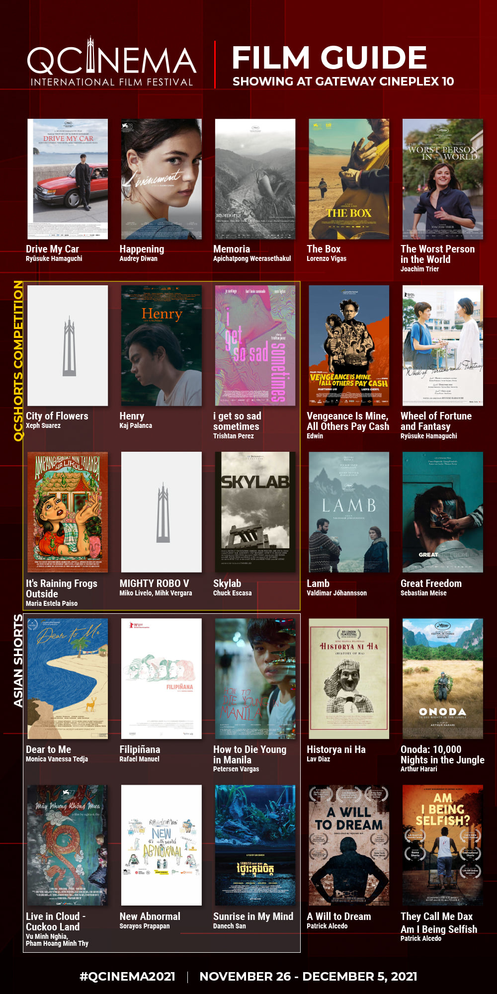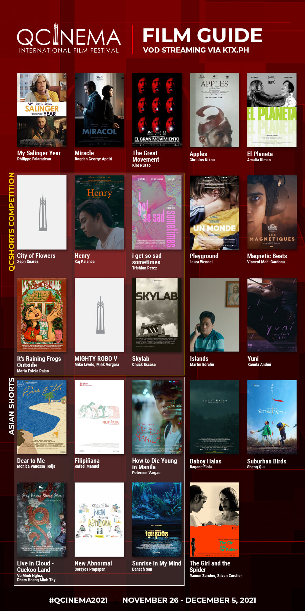 Check out the complete screening schedules of QCinema for its Gateway screenings and KTX streaming.