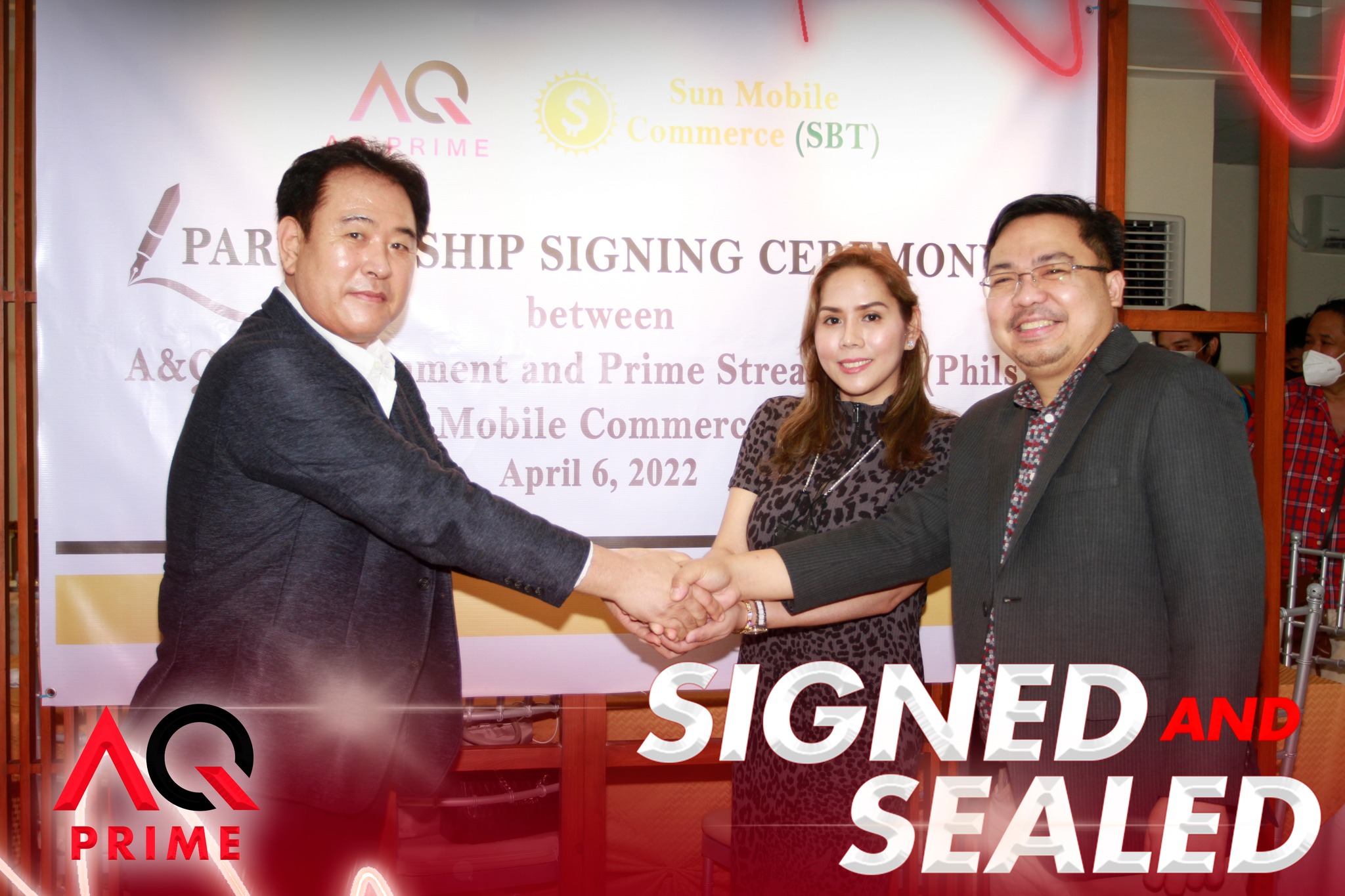Philippines’ A&Q Entertainment and Prime Stream, Inc. has announced a groundbreaking link with South Korea’s Sun Mobile Commerce (SBT) as the two companies signed an agreement on April 6 at their newly opened headquarters in Quezon City.