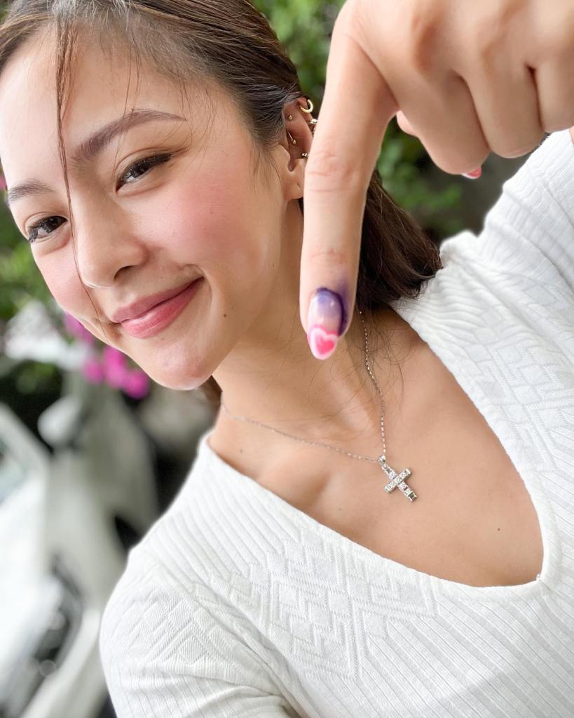 Actress Kim Chiu, who also expressed support for VP Leni’s candidacy, posted a photo of her inked finger with a nail art design of a pink heart.