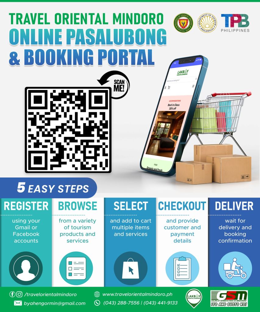 This is a traveler’s dream come true with product and service offerings of a growing community of over 150 trusted hotels, resorts, dive shops, travel agencies, tourist transportation, wellness centers and souvenir shops in Oriental Mindoro that you can access and browse at any time from anywhere.