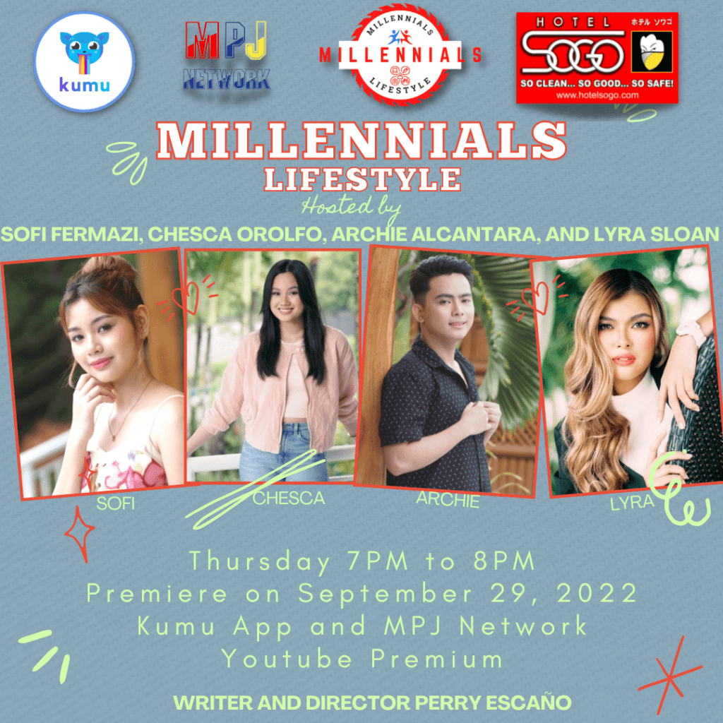 At 7 PM, the show “Millennials Lifestyle” will be on air with hosts singer Sofi Fermazi, Chesca Orolfo, Archie Alcantara and Lyra Sloan. Its pilot guest is Marie Preizer.