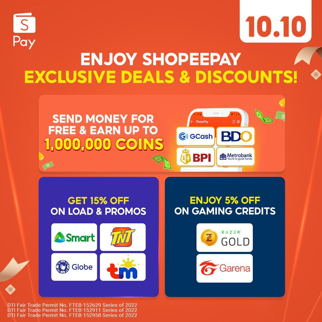 ShopeePay is making shopping more convenient and rewarding for users by offering exciting prizes and discounts this early October. With Send Money & Earn promo, ShopeePay will be giving away up to ₱1,000,000 worth of coins where users can win up to 500 coins or ₱1,000 voucher on bills payment by simply sending at least ₱50 to other Shopee users until October 12. Have a blast and enjoy stronger connections with fellow gamers and MOBA players when you purchase Gaming Credits from Razer and Garena at 5% off. Smart and TNT Prepaid subscribers can also buy Load at 15% off, exclusive only with ShopeePay. Meanwhile, Globe and TM prepaid subscribers can get 1GB of data for free for every Go+99 or TM ez99 & GOMO prepaid subscribers can get 10% off on 30GB no expiry data promo.
