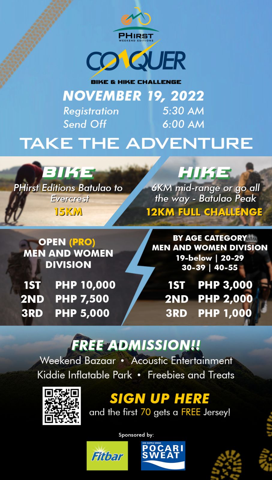 This November, PHirst elevates the Batulao adventure by adding a bike challenge to the familiar hike by presenting PHirst Conquer Edition: The Bike and Hike Challenge happening on November 19, Saturday at 5:30 AM. This weekend edition promises to give riders just the right amount of pedal and grind while enjoying the refreshing nature view.