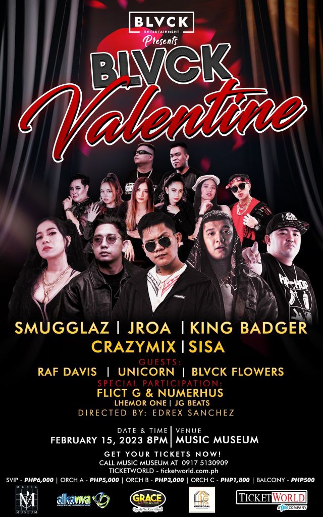 Catch the best of the best of Pinoy hip-hop in Blvck Entertainment (Black Entertainment)’s Valentine concert aptly entitled “Blvck Valentine.” This is all set on February 15, 2023, 8PM, at the Music Museum.