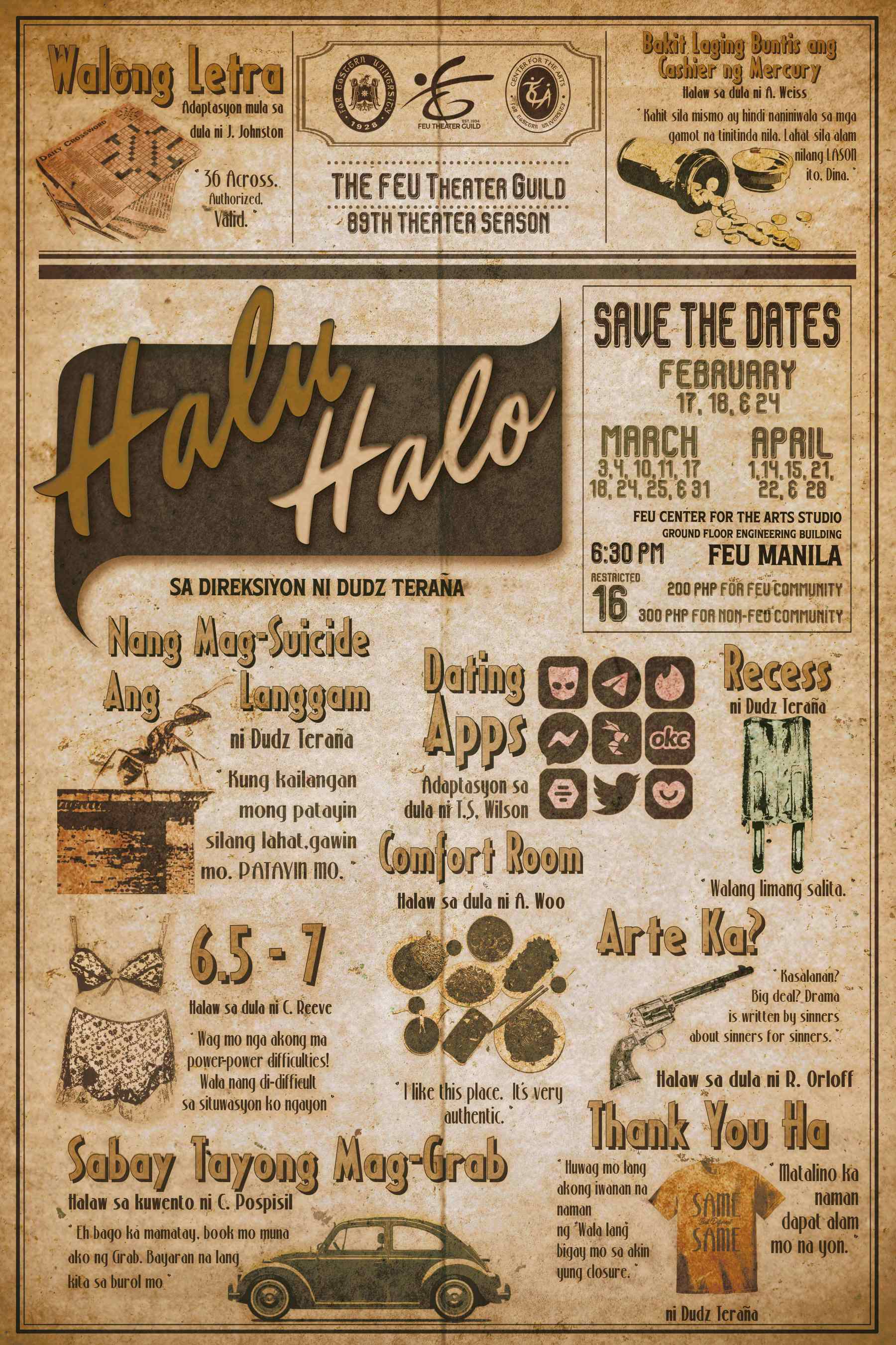 The FEU Theater Guild (FTG), the longest-running organization in the University-Belt, celebrates its 89th founding anniversary this 2023. Just in time for its preparation for its 90th anniversary in the following year, the Far Eastern University (FEU)’s pride in the world of campus theater wholeheartedly offers its major production “Halu Halo”.