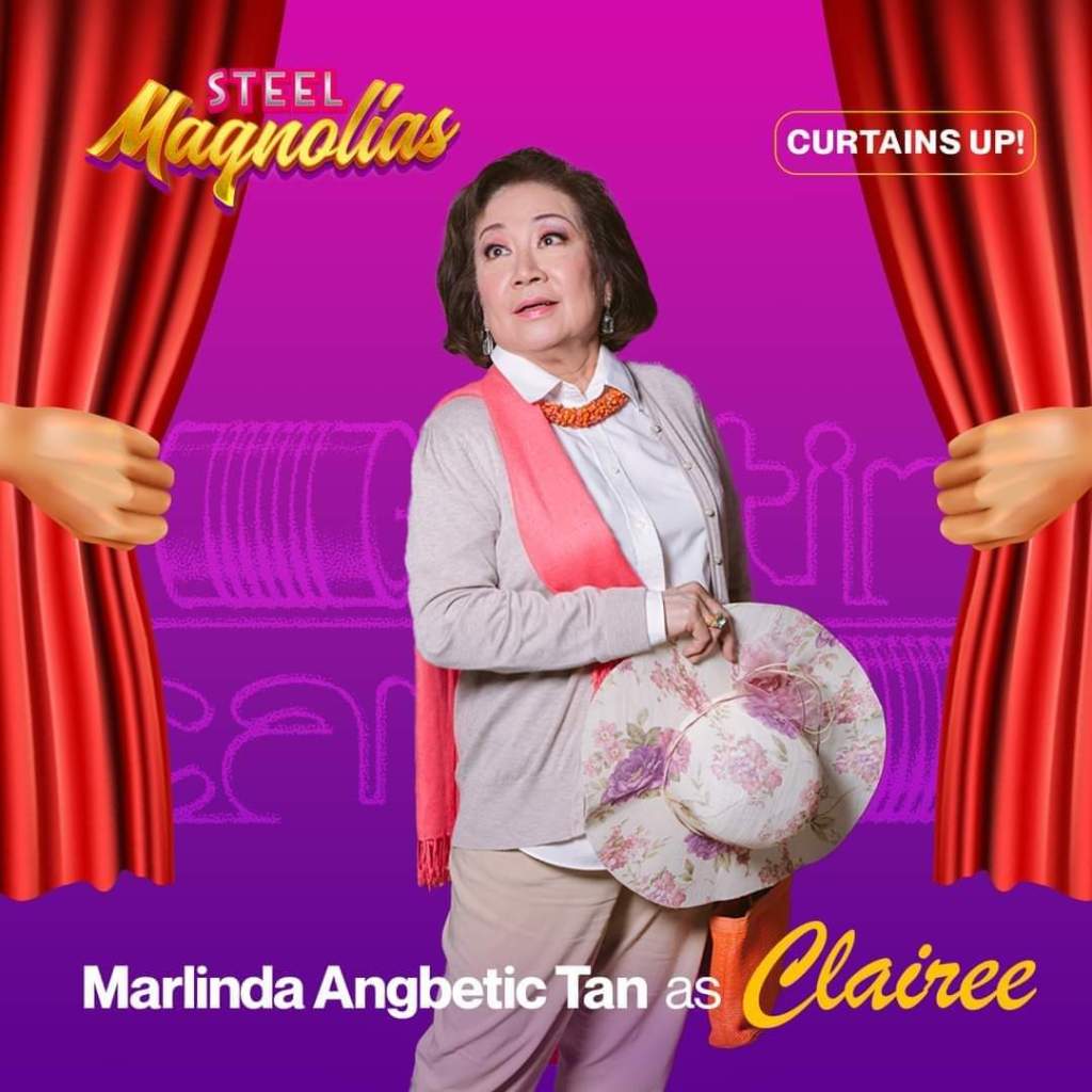 MARLINDA ANGBETIC ANG plays the role of Claire Belcher, the cheerful, gossip-hound, 66-ish widow of the former Mayor. Funny, fiery, witty,