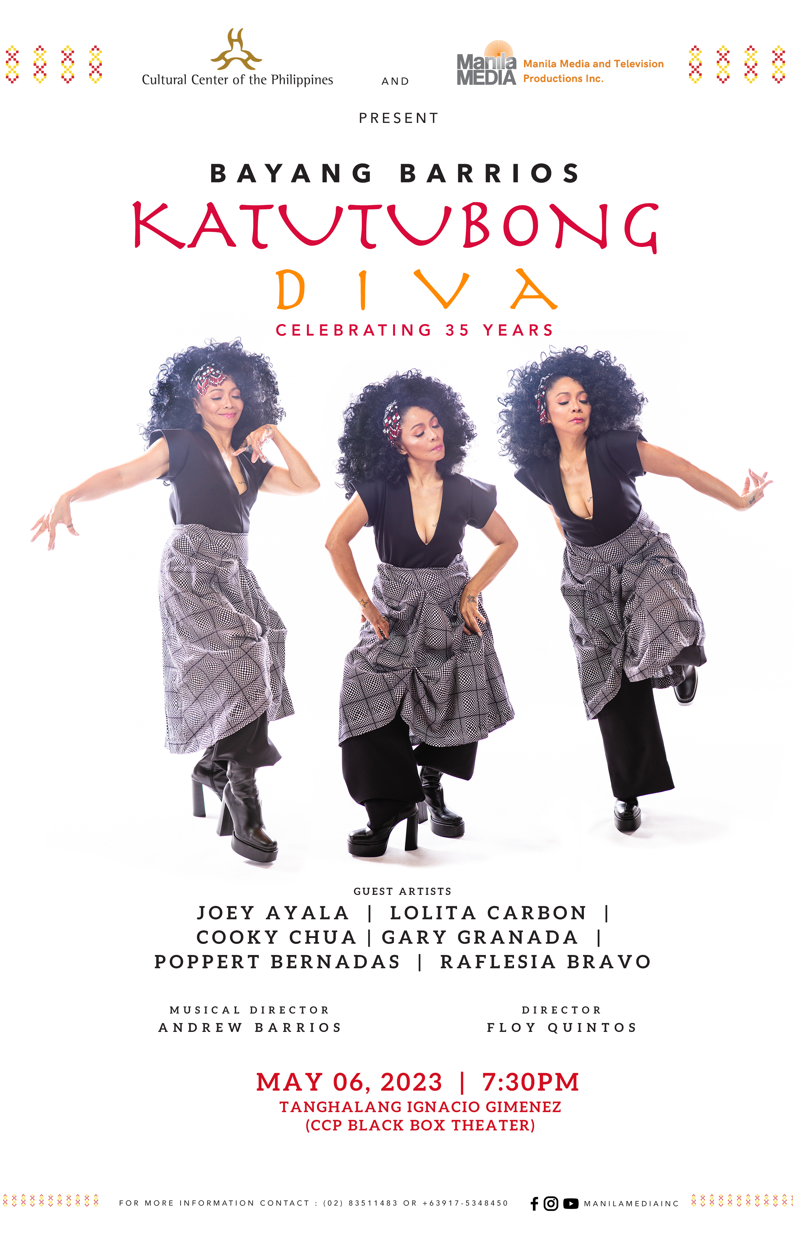 Meet a reintroduced Bayang Barrios, the Katutubong DIVA (Driven, Inspired, Victorious, and Authentic) via her first solo concert at the Cultural Center of the Philippines’ Tanghalang Ignacio B. Gimenez (Black Box Theater) slated on May 6, 2023 at 7:30 PM, with guests Joey Ayala, Gary Granada, Lolita Carbon, Cooky Chua and Poppert Bernadas, as well as her friends and collaborators over more than three decades in showbiz.