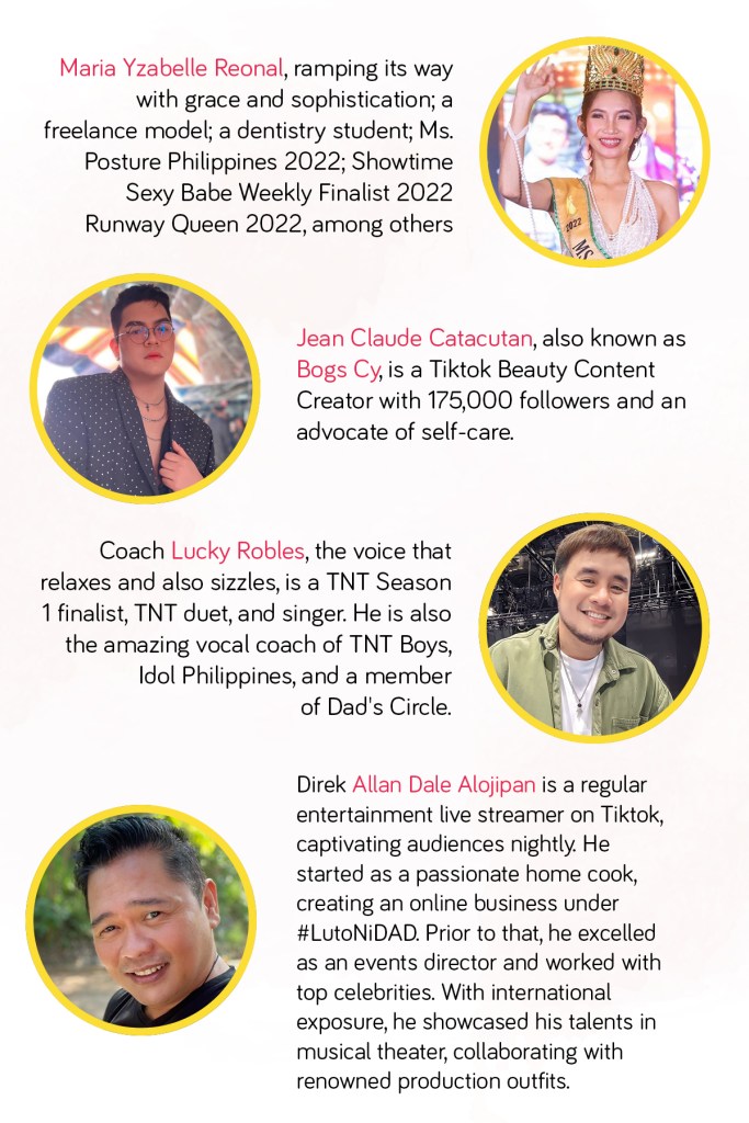 - Yzabel Reonal, ramping its way with grace and sophistication; a freelance model; a dentistry student; Ms. Posture Philippines 2022; Showtime Sexy Babe Weekly Finalist 2022; Runway Queen 2022, among others