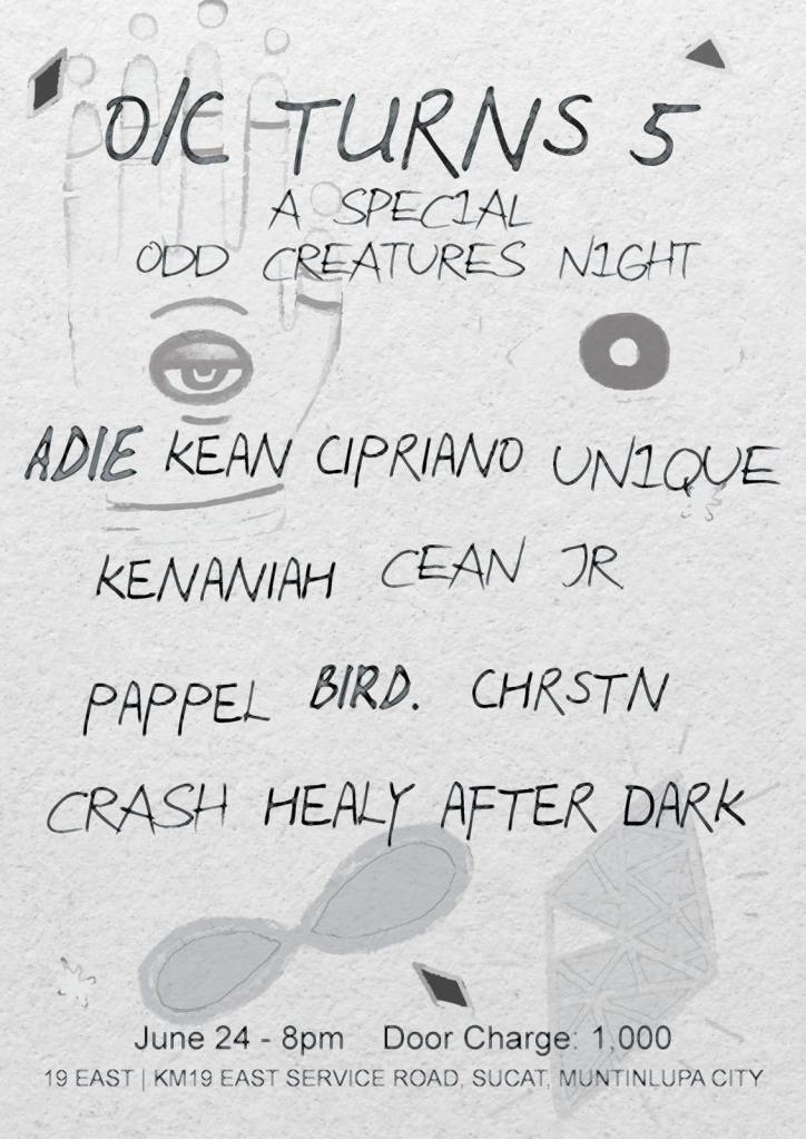 Dubbed as ‘O/C Turns 5: A Special Odd Creatures Night,’ the Saturday show has a door charge of Php 1,000 payable at the entrance of the venue.