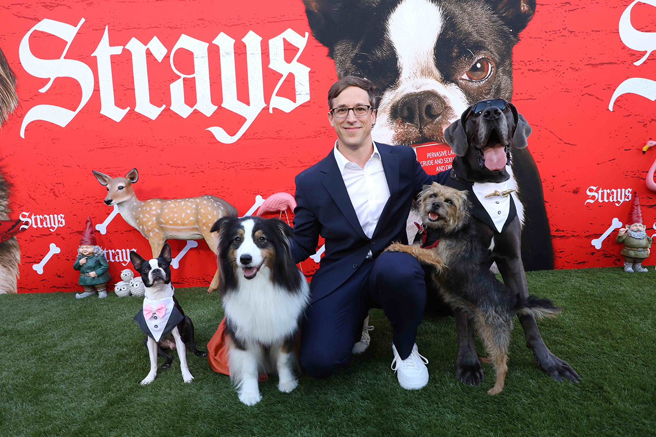 Once the dogs completed production on Strays, any animal who didn’t already have a permanent home with the trainers was found a loving one with screened individuals who would give their beloved new family member a fulfilling life. In fact, one of the dogs was adopted by director Josh Greenbaum. “When we brought in two adorable puppy Border Terriers to play young Reggie in an early scene of the film, it was made known to me that these dogs wouldn’t have a home after the shoot,” Greenbaum says. “So, I decided to adopt one of them and asked my kids to name him. They immediately said we’ve got to name him Reggie because he played Reggie in the movie. I came home after shooting the film, introduced Reggie to the family, and now I have Will Ferrell in my house.”