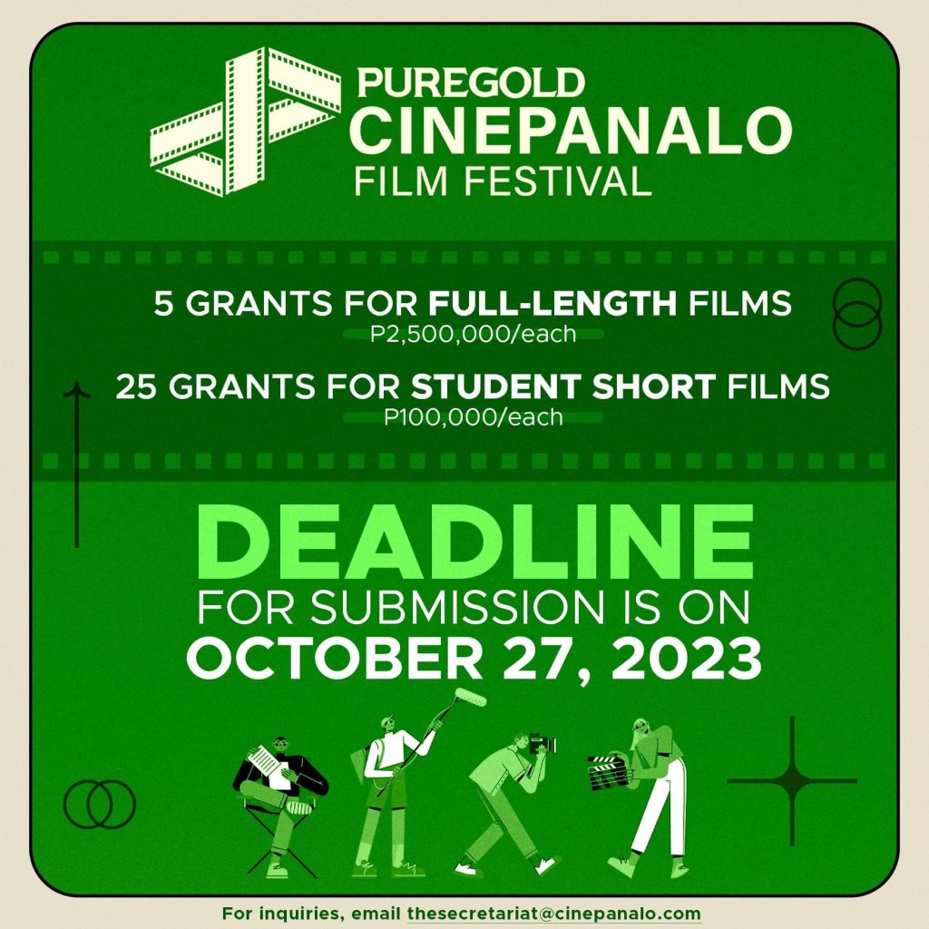 Once chosen, Puregold CinePanalo Film Festival participants are required to submit their fully produced film on or before March 1, 2024. All final submissions in the short film category must have a minimum runtime of 20 minutes and a maximum runtime of 30 minutes. All feature film submissions must be at least 90 minutes long. Each entry will be screened during the Festival, which is set to take place from March 8-10, 2024 at the Gateway Cinemas in Cubao, Quezon City.