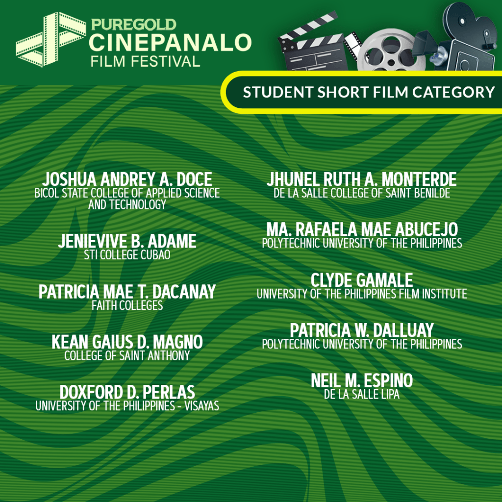 Dedicated to showcasing the resilience of the Filipino spirit and celebrating everyday victories, Puregold CinePanalo has named 15 established and promising directors for the full-length category. Meanwhile, 40 talented student filmmakers have advanced to the next round in the short film category.