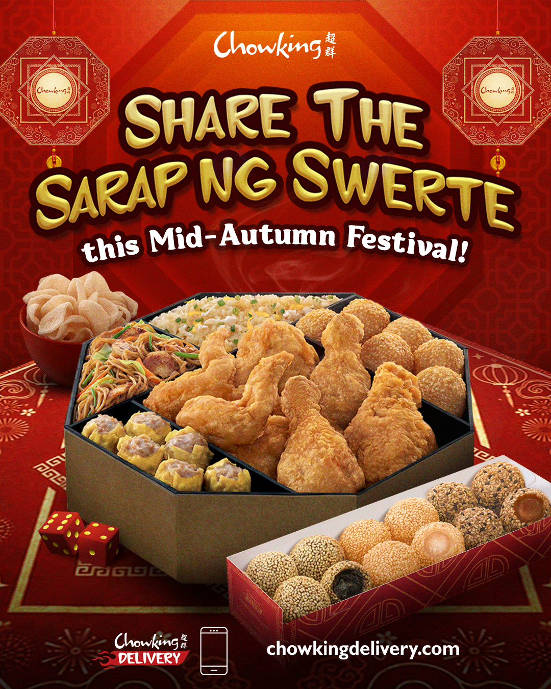 Adding to the celebrations and to share the good fortune of the Mid-Autumn Festival to everyone, Chowking invites families to visit their nearest Chowking branch to #ShareTheSarapNgSwerte with their loved ones and get a chance to join the Lucky Dice Game. For every purchase worth PHP 600, diners get one (1) roll for a chance to win instant prizes like exclusive Chowking merch and other freebies.