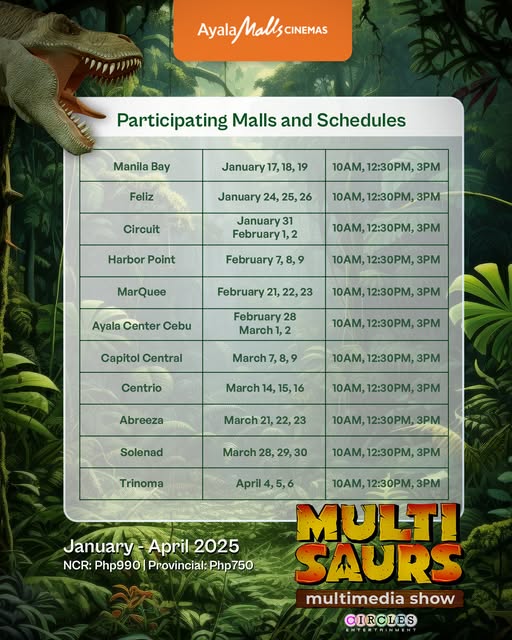 Don’t miss the chance to embark on this thrilling family adventure. “Multisaurs” roars into select Ayala Malls Cinemas starting January 17 and runs until April 6. Book your tickets now and make unforgettable memories with your loved ones!