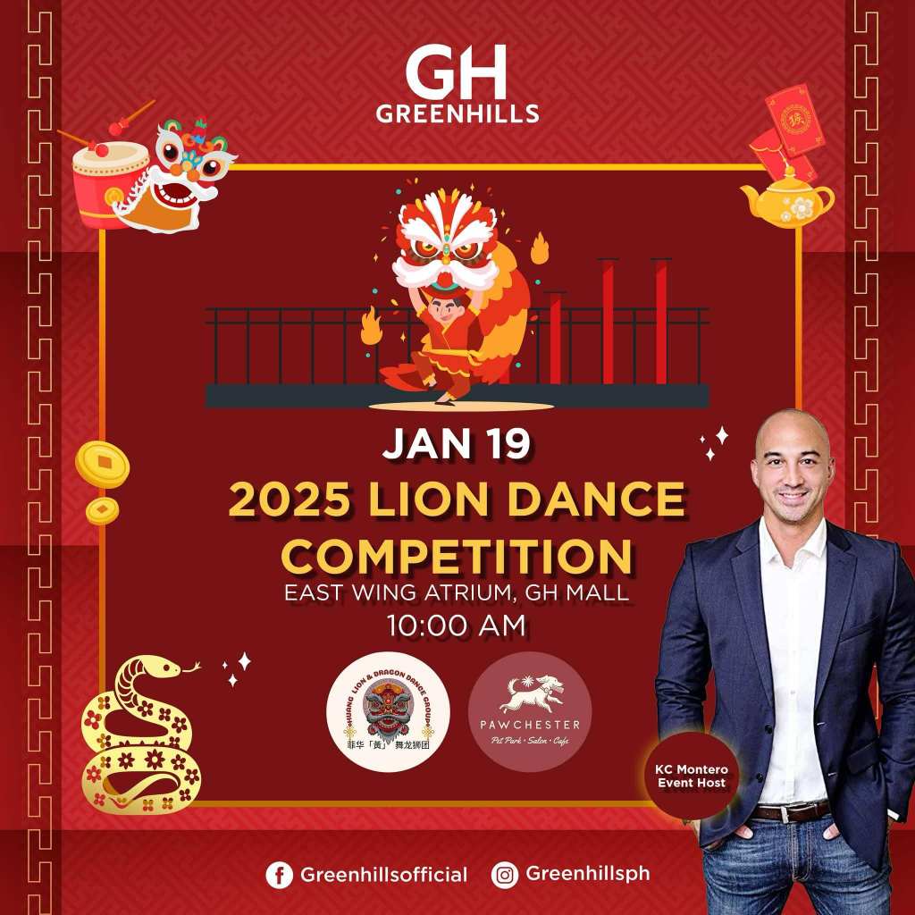 To be hosted by KC Montero, the Lion Dance Competition 2025 will take place from 10 AM to 5 PM on January 19, 2025, at the East Wing Atrium of GH Mall. It is free for all to enjoy.