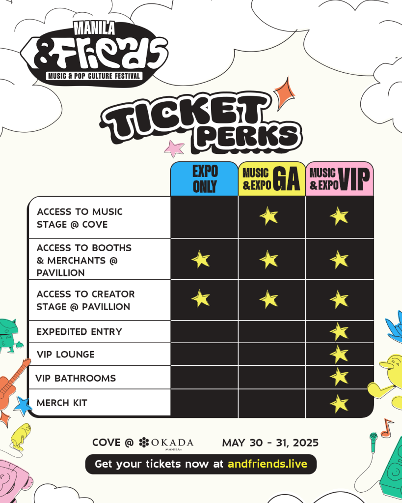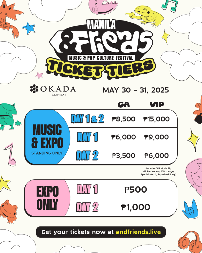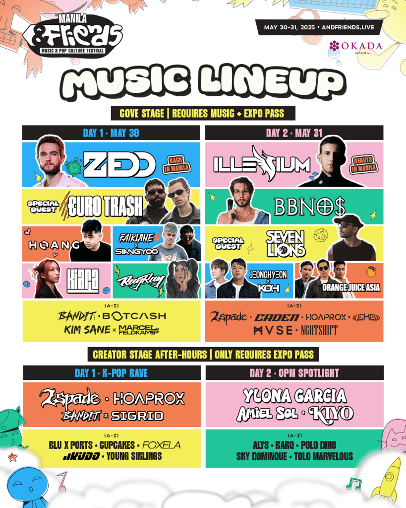 “We’ve seen how festivals like Coachella, EDC, and Tomorrowland unite music lovers from all over the world, and now it’s Manila’s turn,” says Justin Banusing, CEO of Clout Kitchen, organizers of the festival. “&FRIENDS is about bringing people together—whether you’re here for the biggest names in EDM, viral popstars, or the next breakout artist, this is the festival for fans who want it all.”