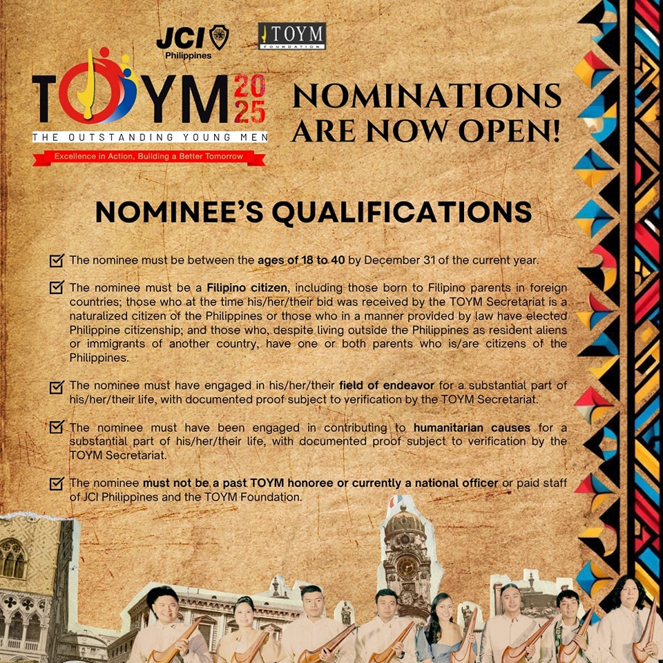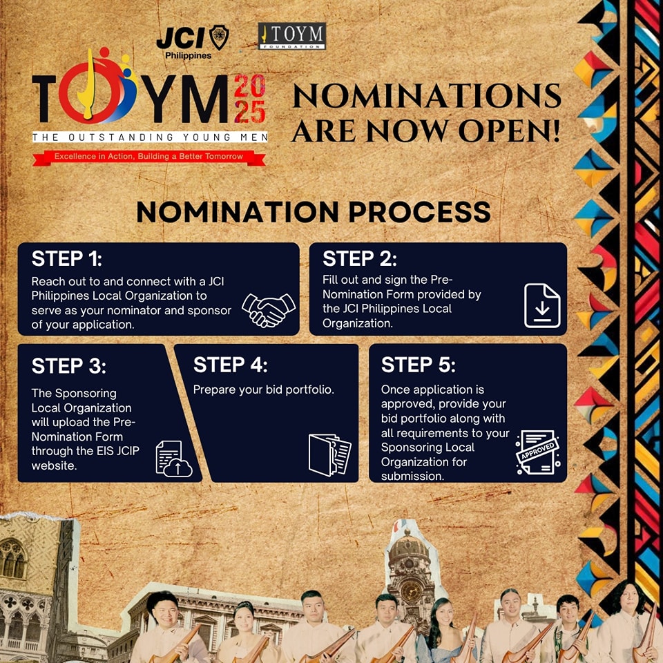 JCI Philippines invites nominations of young Filipinos who have shown exceptional leadership and meaningful contributions in their field or community. The nomination period runs until August 30, 2025.