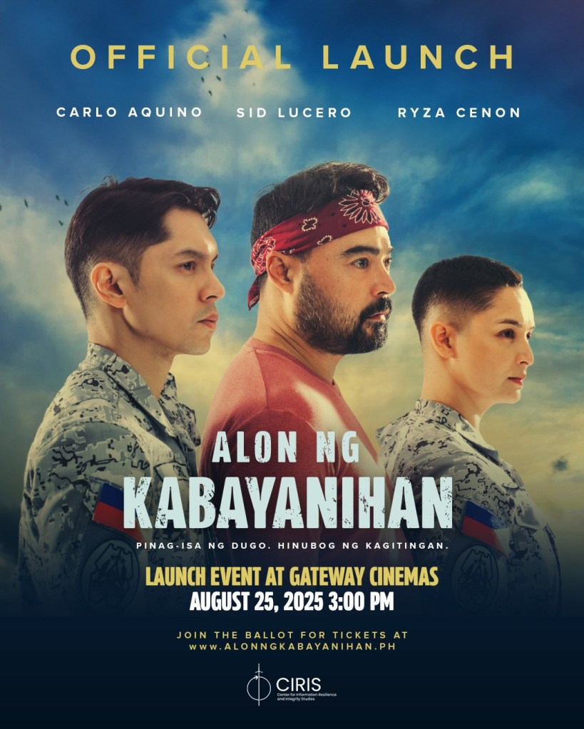 “Alon ng Kabayanihan” premieres on August 25, 2025, and will stream on the film’s Facebook page: www.facebook.com/alonngkabayanihan